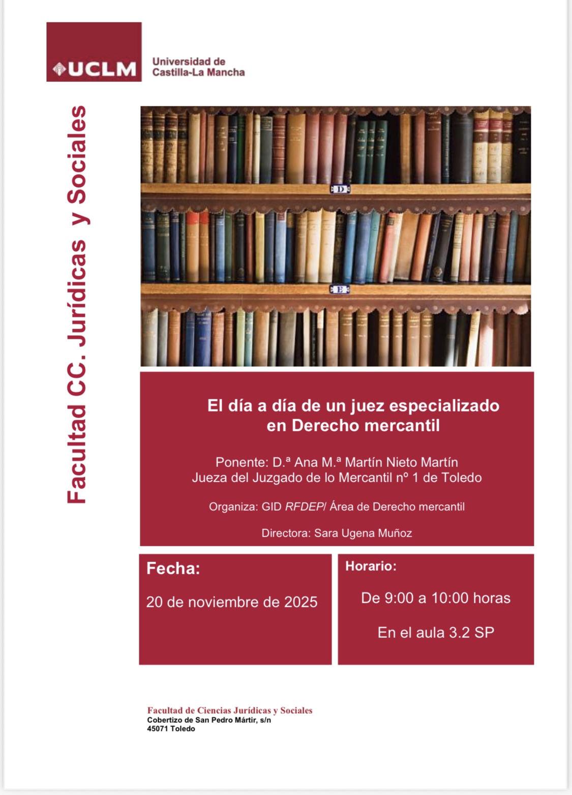 El próximo 20 de noviembre de 2025 tendrá lugar la ponencia El día a día de un juez especializado en Derecho Mercantil.