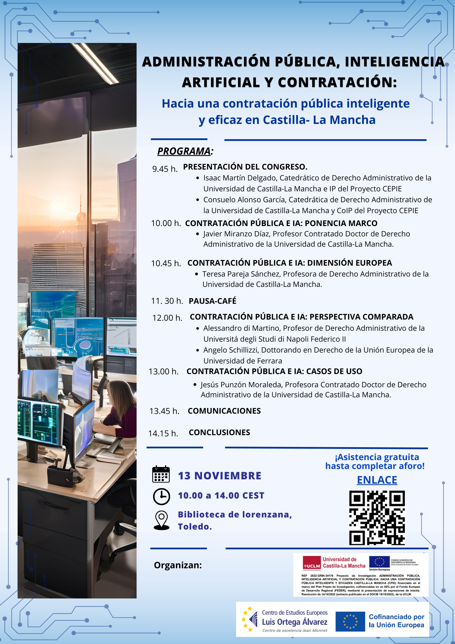 El pasado 13 de Noviembre en la Biblioteca de Lorenzana, Toledo, se llevo a cabo el Congreso Internacional sobre Administración Pública, Inteligencia Artificial y Contratación. Asistencia gratuita hasta completar aforo.