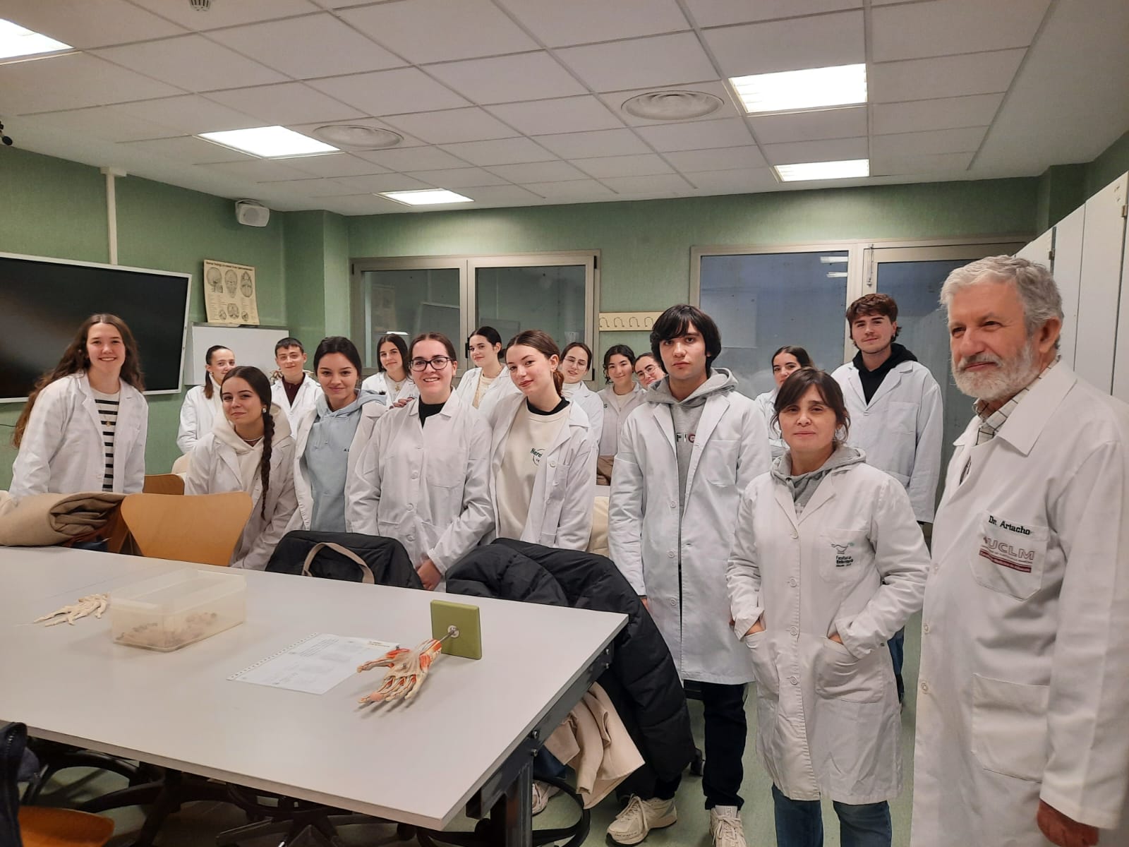 Nuestras alumnas y alumnos del primer curso del Grado de Enfermería de Albacete, un curso más, han realizado prácticas de Anatomía Humana en las salas de disección de la Facultad de Medicina de Albacete durante los días 10, 11 y 12 de diciembre. En estas prácticas aplicaron sus conocimientos del cuerpo humano mediante la observación y manipulación de prosecciones cadavéricas. La actividad fue organizada e impartida por la profesora de la asignatura de Anatomía Humana de la Facultad de Enfermería, Sandra Cebada Sánchez, junto a los profesores, Emilio Artacho Pérula y Juan Francisco Raspeño García, de la Facultad de Medicina, a los cuales agradecemos su generosa y voluntaria colaboración, que ha sido fundamental para la realización de dicha actividad. Gracias a la colaboración de ambas facultades se han podido llevar a cabo estas prácticas, que han sido muy bien valoradas por nuestro alumnado.