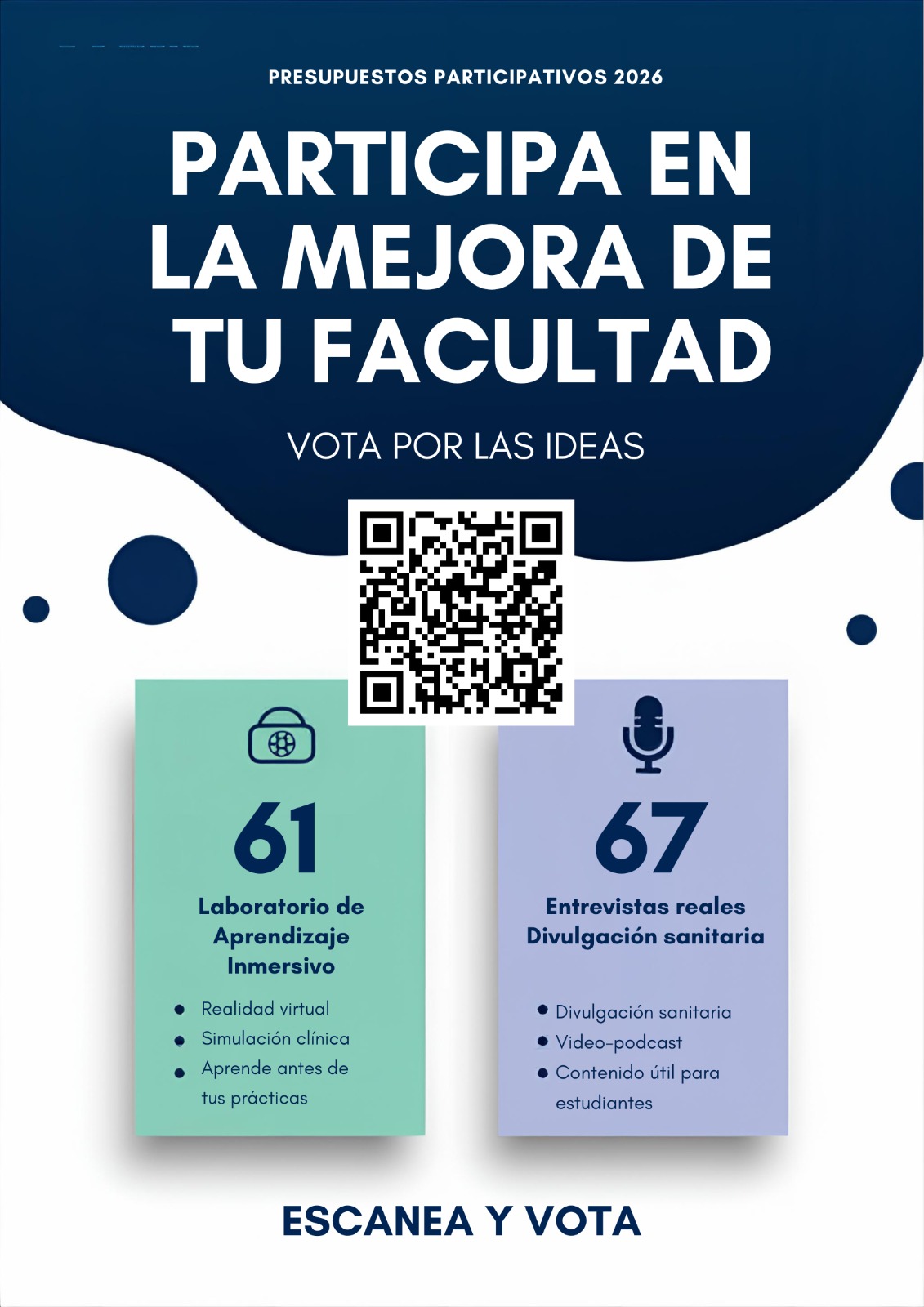 Desde la Facultad hemos presentado dos propuestas (61 y 67) pensadas para beneficio del estudiantado, útiles en cualquier asignatura. Creemos que son proyectos con recorrido real, que pueden sumar valor a nuestra carrera y abrir nuevas formas de trabajar juntos dentro de la Facultad.